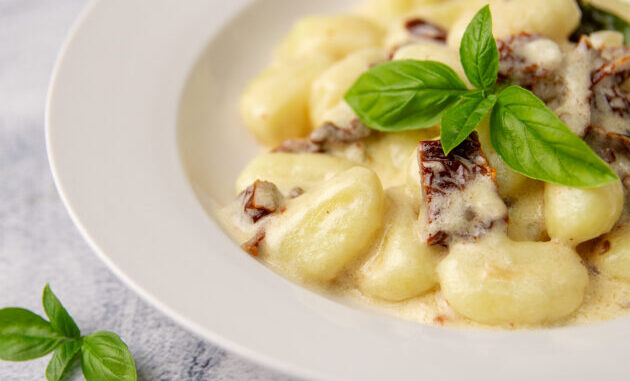 Kada ste dobro umiješali sve sastojke (smjesa mora biti prilično mekana) na glatku površinu pospite malo brašna, stavite jedan dio smjese, razvaljajte u oblik štapa, a zatim isijecite na njoke veličine dva centimetra. Sa brašnjavim rukama svaku njoku oblikujte i poredajte na pobrašnjen kalup tako da se ne dodiruju (da se ne zalijepe jedna za drugu). Ponavljajte isti postupak dok svu smjesu ne oblikujete.